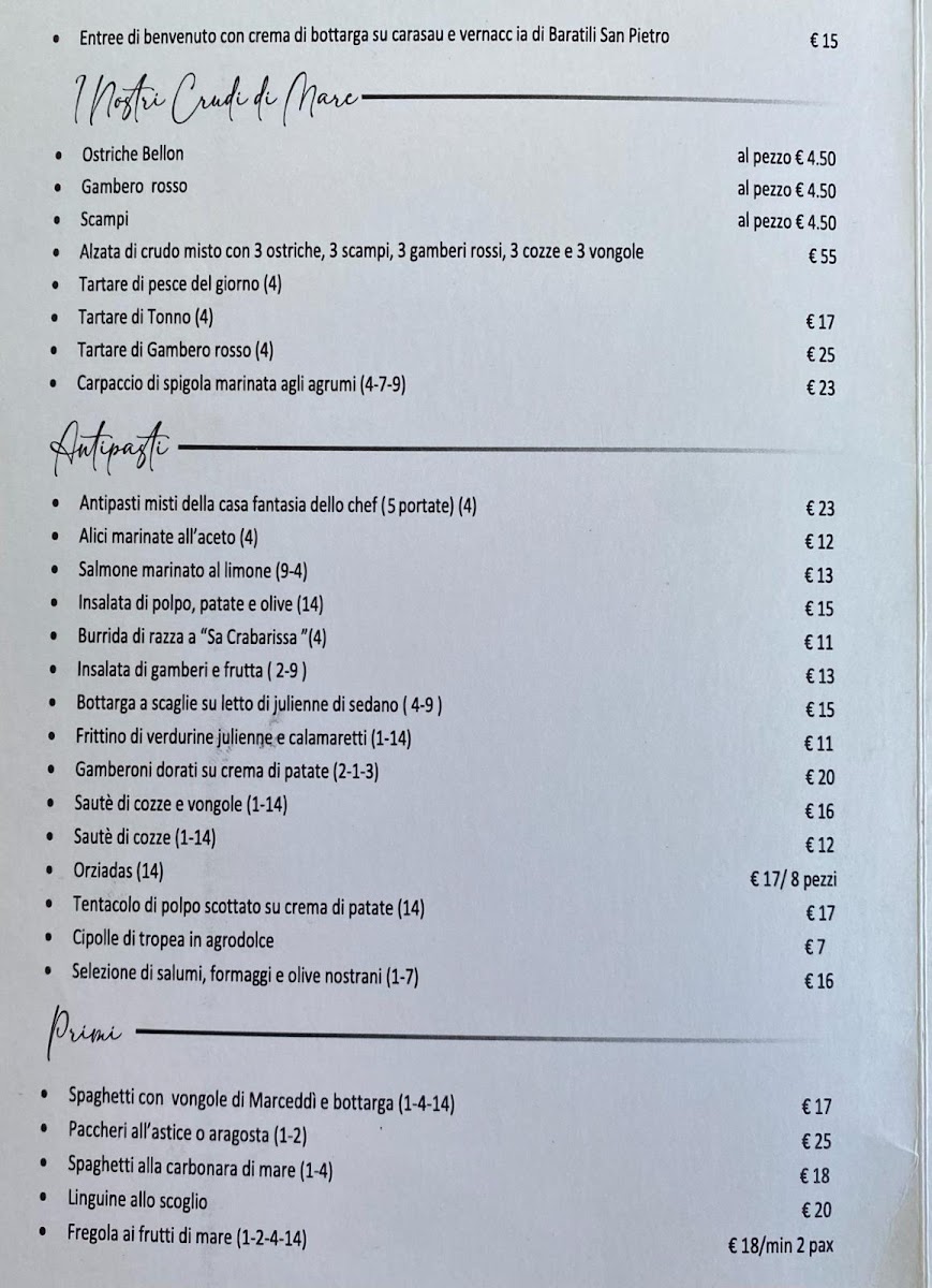 The menu at Ristorante Bentu De Mari leaves a lasting impression as a celebration of Sardinian coastal flavors, thoughtfully balancing tradition and freshness. Standout starters like Crostini Di Pane Con Crema Di Bottarga and Cannolicchi Gratinati immediately set the tone with their rich, briny depth, while the comforting Zuppetta Cozze E Arselle highlights the kitchen’s skill in elevating simple seafood into something memorable. Pasta dishes are equally compelling, especially the Spaghetti Con Arselle Con Crema Di Bottarga, where the delicate sweetness of clams is enhanced by the distinctive intensity of bottarga. The menu continues to impress with hearty and satisfying mains such as the Fritto Misto Pesce Verdure, perfectly crisp and light, and the indulgent Pizza Frutti Di Mare Spettacolare, generously topped and full of flavor. To finish, the classic Tiramisù provides a familiar yet refined conclusion, rounding out a menu that consistently showcases quality ingredients and a deep respect for local culinary heritage.